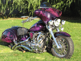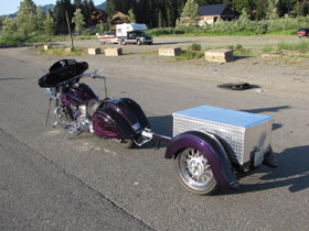 It has several parts from Baron's on it: Extended gas tank Fiberglass Dash Fiberglass Side Covers Rear brake master cylinder Low profile gas cap The exhaust is LA Choppers Curved Double D's It has a Dragonfly fairing and Corbin Beetle bags. I ride this bike all over the country even tows a home made trailer made out of Roadstar fenders and wheels. |