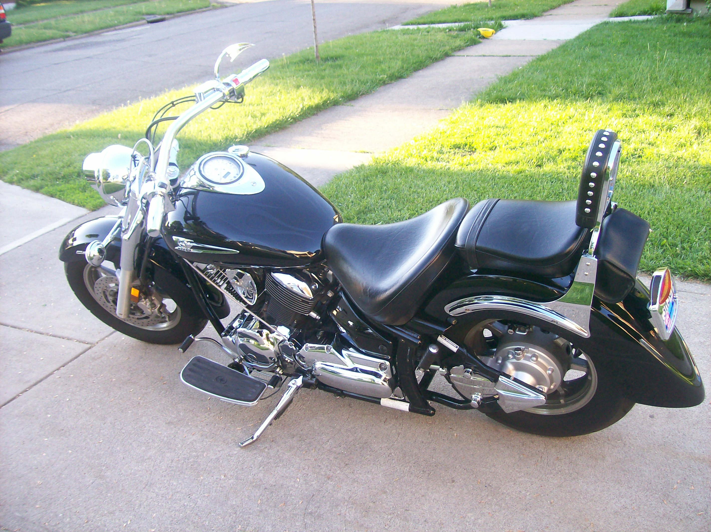 Cast Wheel Edition Raven w/Black Ghost Flames Additions to bike: Barons Oil Filter Relocation Kit Barons Solo License Plate Kit Barons Jet Kit Barons Big Air Kit (Flamed) Barons Mini Teardrop (Flamed) Barons Radius Bars Barons Flamed Billet Grips Barons Stainless Steel Clutch Cable Barons Lowered Kickstand Barons Lowering Bones Barons Heavy Duty Spring Arlen Ness Scoop Mirrors Hard Krome 2.75 Big Straights Exhaust Kuryakyn Phantom Covers Kuryakyn Master Cylinder Cover Kuryakyn Drive Shaft Cover Kuryakyn Chrome Levers Kuryakyn Chrome Switch Housings Podz Lizard Green Lighting Kit Yamaha Low Backrest Kit River Road Studded Tool Kit Pouch |