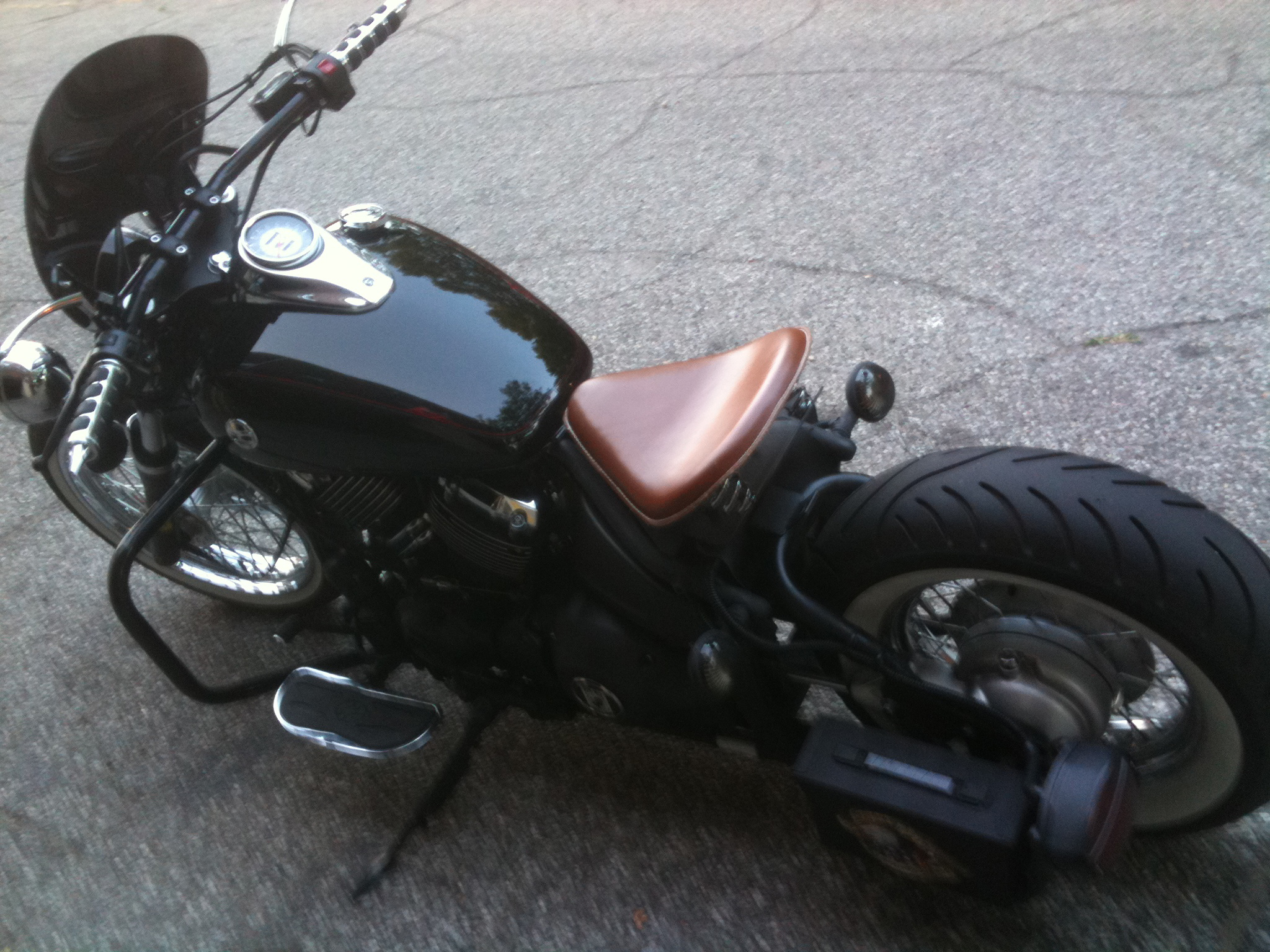 | This is a 2007 Vstar650 inspired by old school bobbers. I re-did the whole bike to give it a badboy yet clean vintage look. |