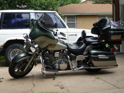 | Dear Baron's, After having an accident with a deer last June in Wyoming, I finally completed the rebuild of my 1999 Yamaha Roadstar. I used your engine guard again after my previous one was destroyed during the accident. I did all the work myself including the paint, which was my first paint job ever! So here she is and please enter her into the photo contest. |